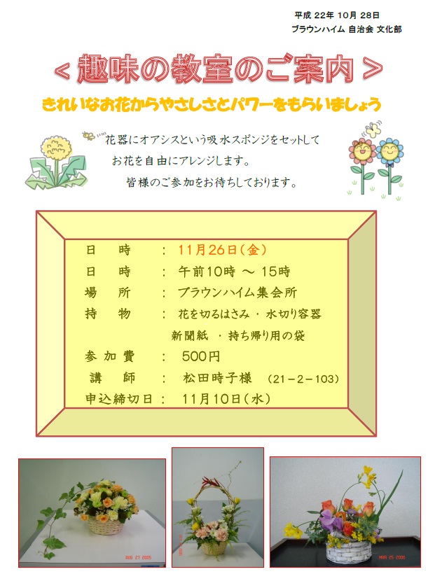 | 趣味の教室のご案内 | jichikai-syumino-kyoushitsu_20101118.jpg |